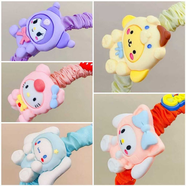 - Design: Each headband features a different primary color and is adorned with various cute, cartoon-like characters and floral embellishments.