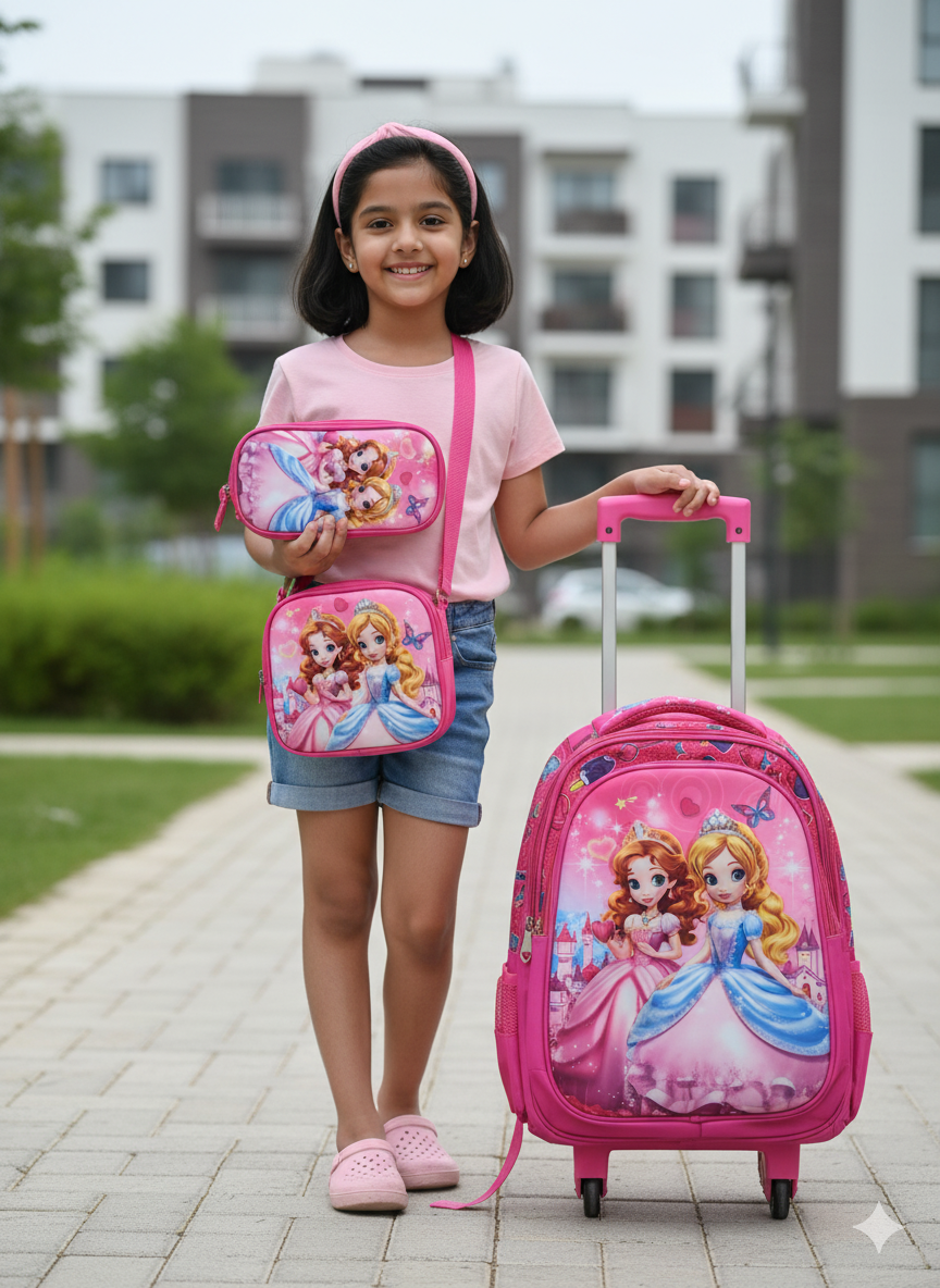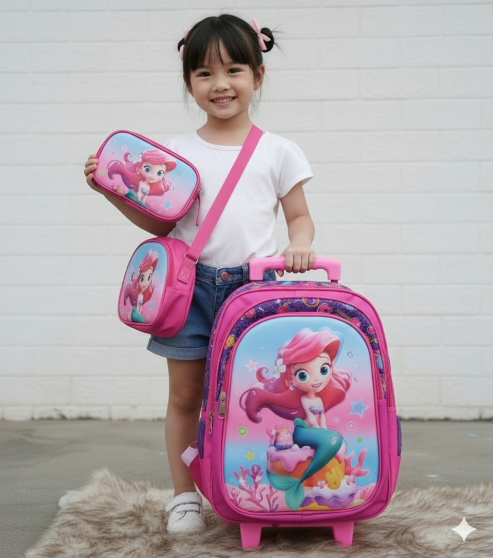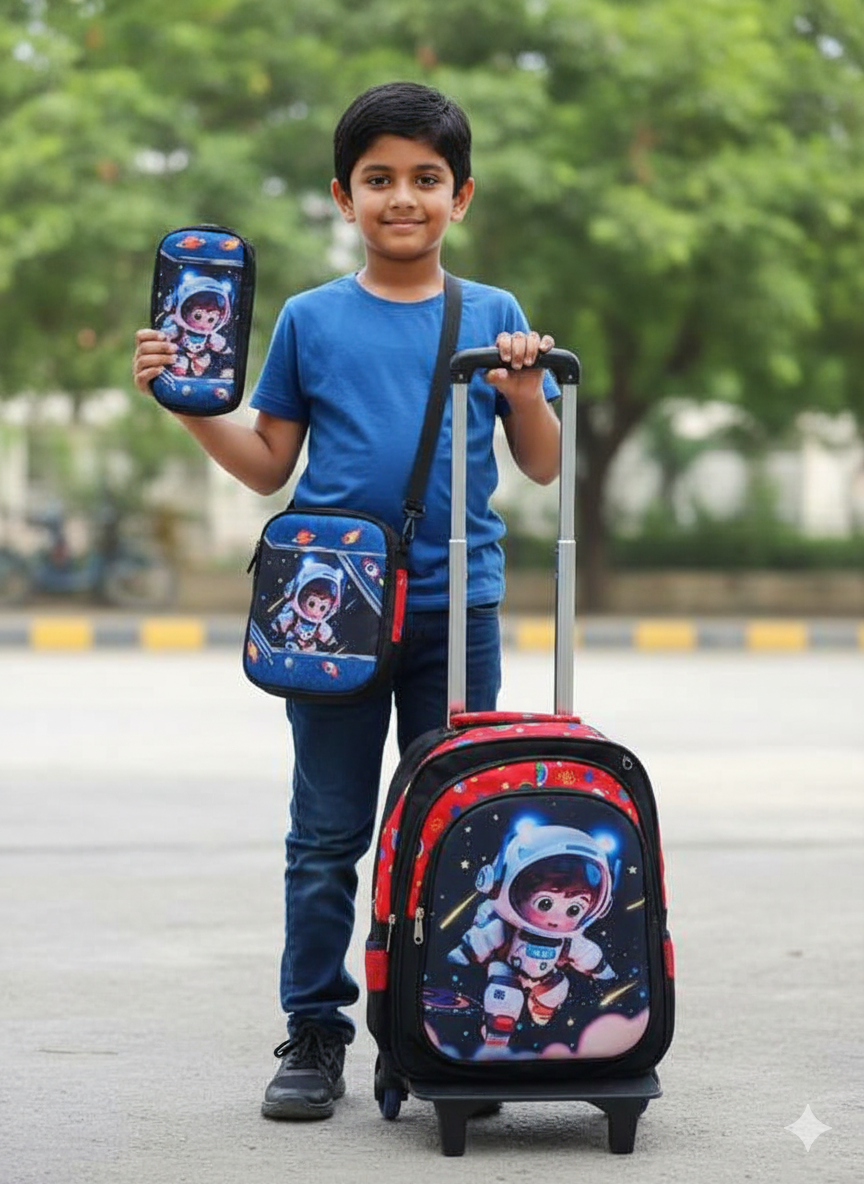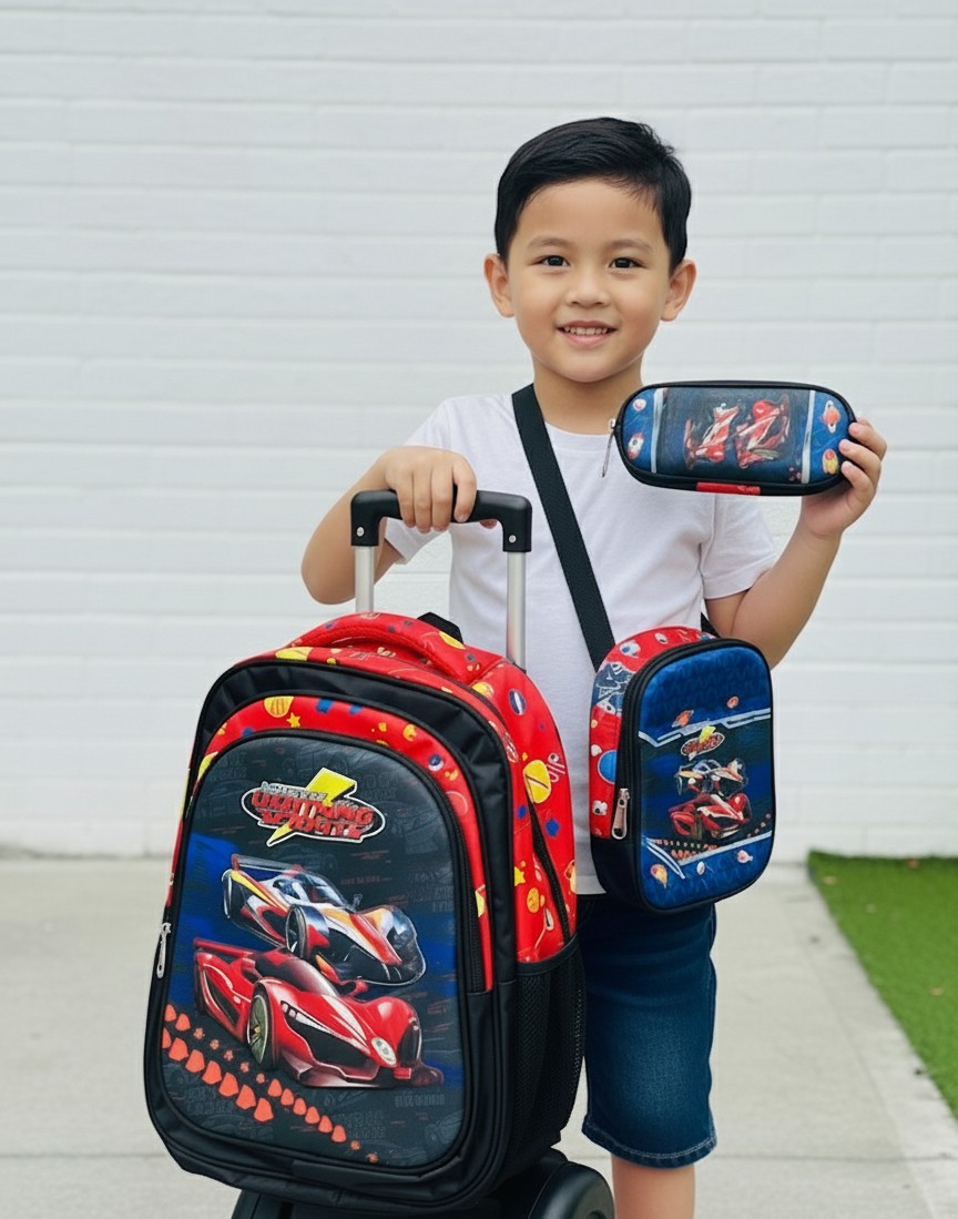 Durable and fun, these kids’ trolley backpacks feature vibrant designs with spacious compartments—perfect for school trips or daily use.