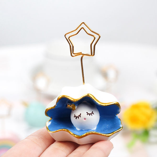 Seashell with Character: Another holder depicts an open seashell revealing a small character resting inside.