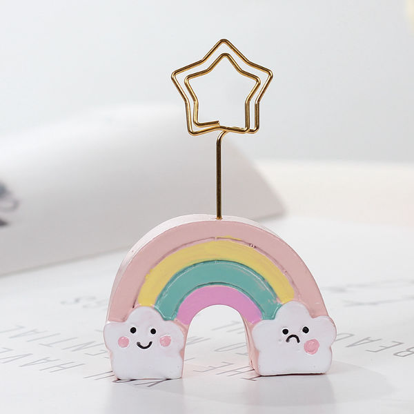 Rainbow Cloud: One holder features a colorful rainbow arching over two smiling white clouds.